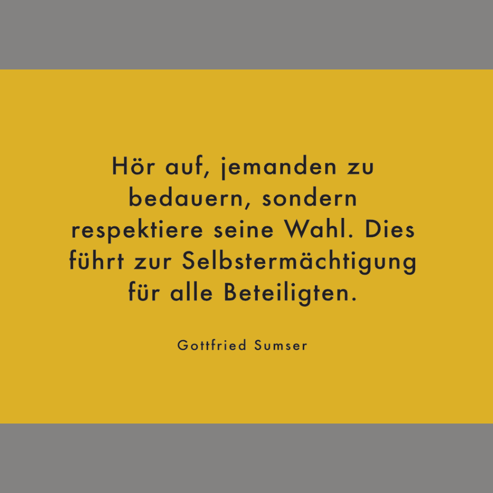 „Hör auf, jemanden zu bedauern, sondern respektiere seine Wahl. Dies führt zur Selbstermächtigung für alle Beteiligten.“
