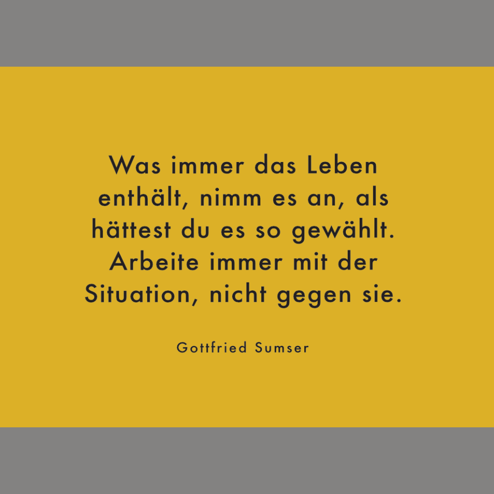 „Was immer das Leben enthält, nimm es an, als hättest du es so gewählt. Arbeite immer mit der Situation, nicht gegen sie.“