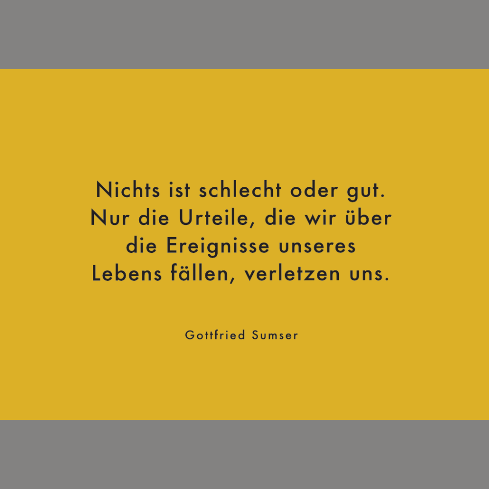 „Nichts ist schlecht oder gut. Nur die Urteile, die wir über die Ereignisse unseres Lebens fällen, verletzen uns.“