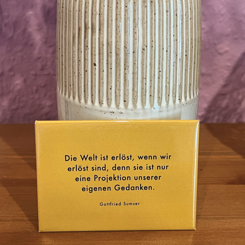 Unsere Magnet-Buttons mit ausgewählten Zitaten von Gottfried Sumser bringen diese stille Kraft in deinen Alltag – an den Kühlschrank, an dein Whiteboard oder an jeden Ort, der ein kleines Licht braucht.