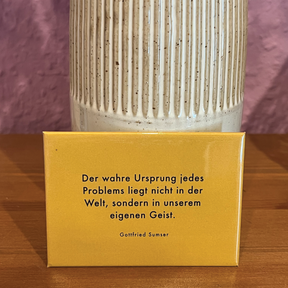 Unsere Magnet-Buttons mit ausgewählten Zitaten von Gottfried Sumser bringen diese stille Kraft in deinen Alltag – an den Kühlschrank, an dein Whiteboard oder an jeden Ort, der ein kleines Licht braucht.