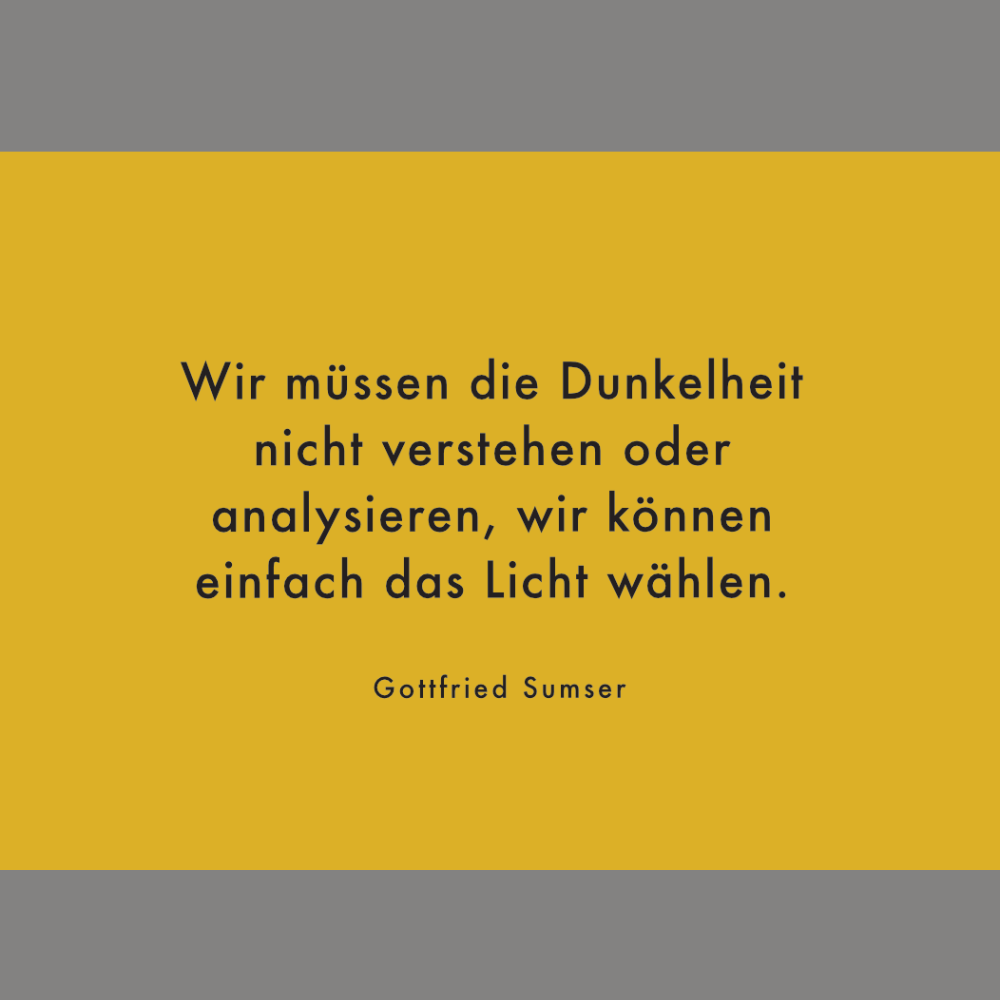„Wir müssen die Dunkelheit nicht verstehen oder analysieren, wir können einfach das Licht wählen.“