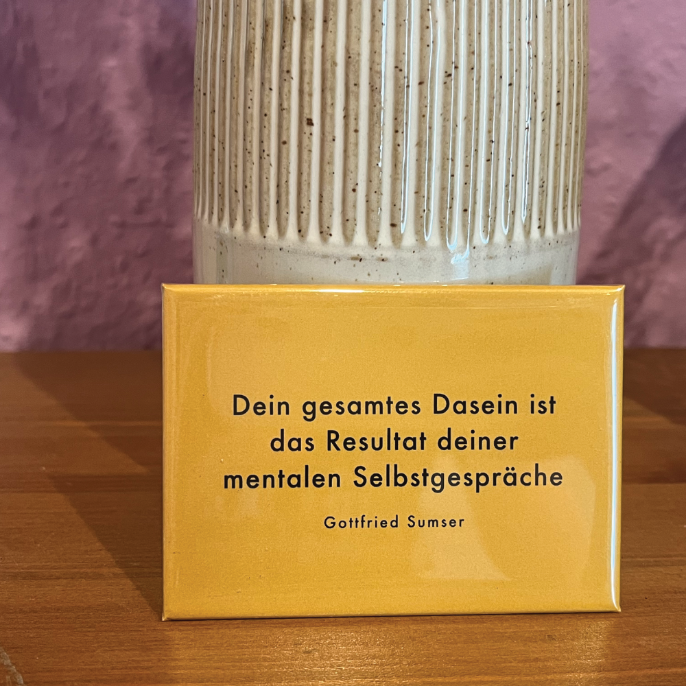 Unsere Magnet-Buttons mit ausgewählten Zitaten von Gottfried Sumser bringen diese stille Kraft in deinen Alltag – an den Kühlschrank, an dein Whiteboard oder an jeden Ort, der ein kleines Licht braucht.