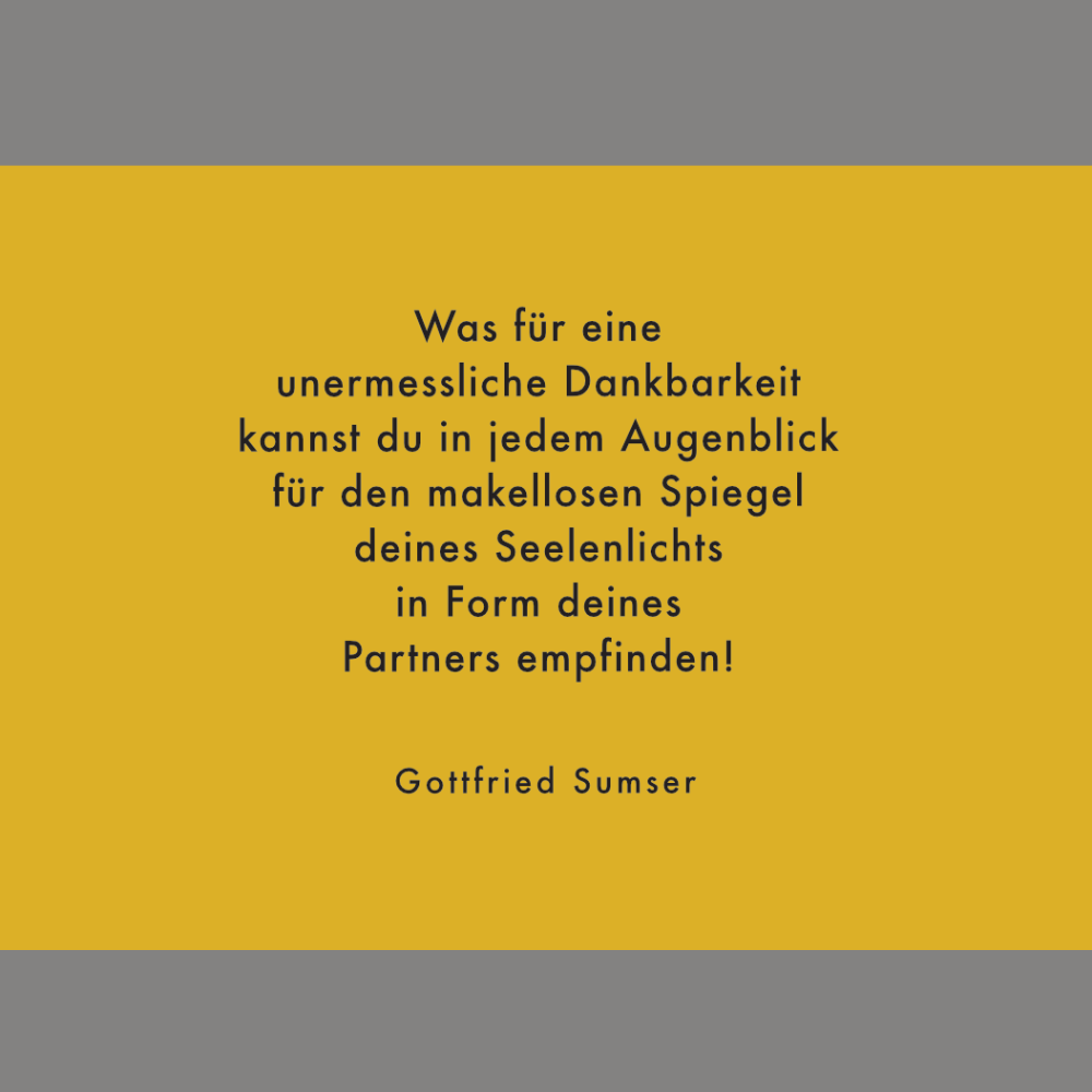 „Was für eine unermessliche Dankbarkeit kannst du in jedem Augenblick für den makellosen Spiegel deines Seelenlichts in Form deines Partners empfinden!“