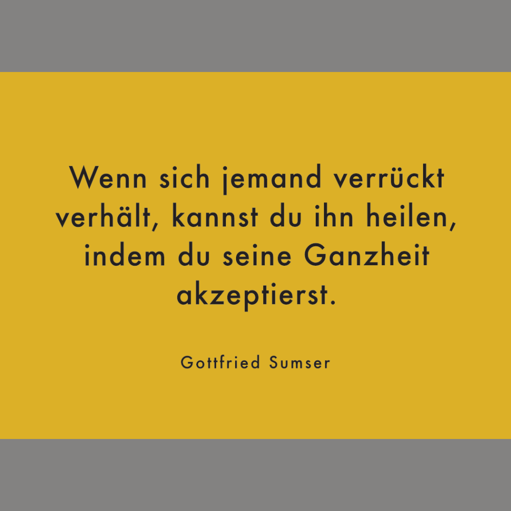 „Wenn sich jemand verrückt verhält, kannst du ihn heilen, indem du seine Ganzheit akzeptierst.“