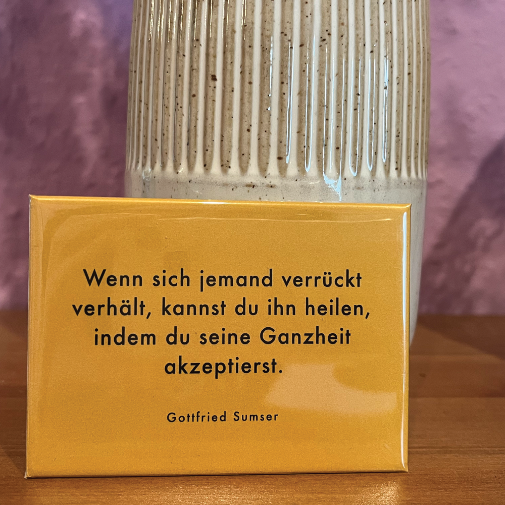 Unsere Magnet-Buttons mit ausgewählten Zitaten von Gottfried Sumser bringen diese stille Kraft in deinen Alltag – an den Kühlschrank, an dein Whiteboard oder an jeden Ort, der ein kleines Licht braucht.