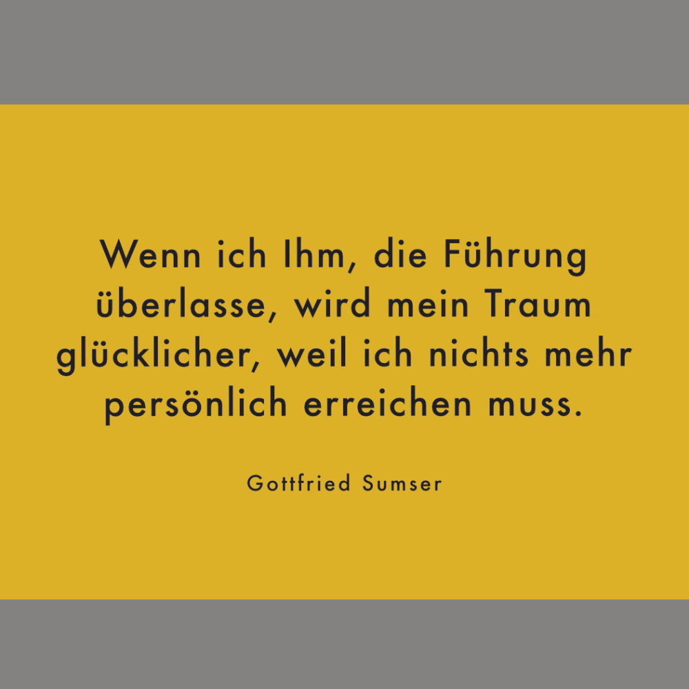 „Wenn ich Ihm, die Führung überlasse, wird mein Traum glücklicher, weil ich nichts mehr persönlich erreichen muss.“
