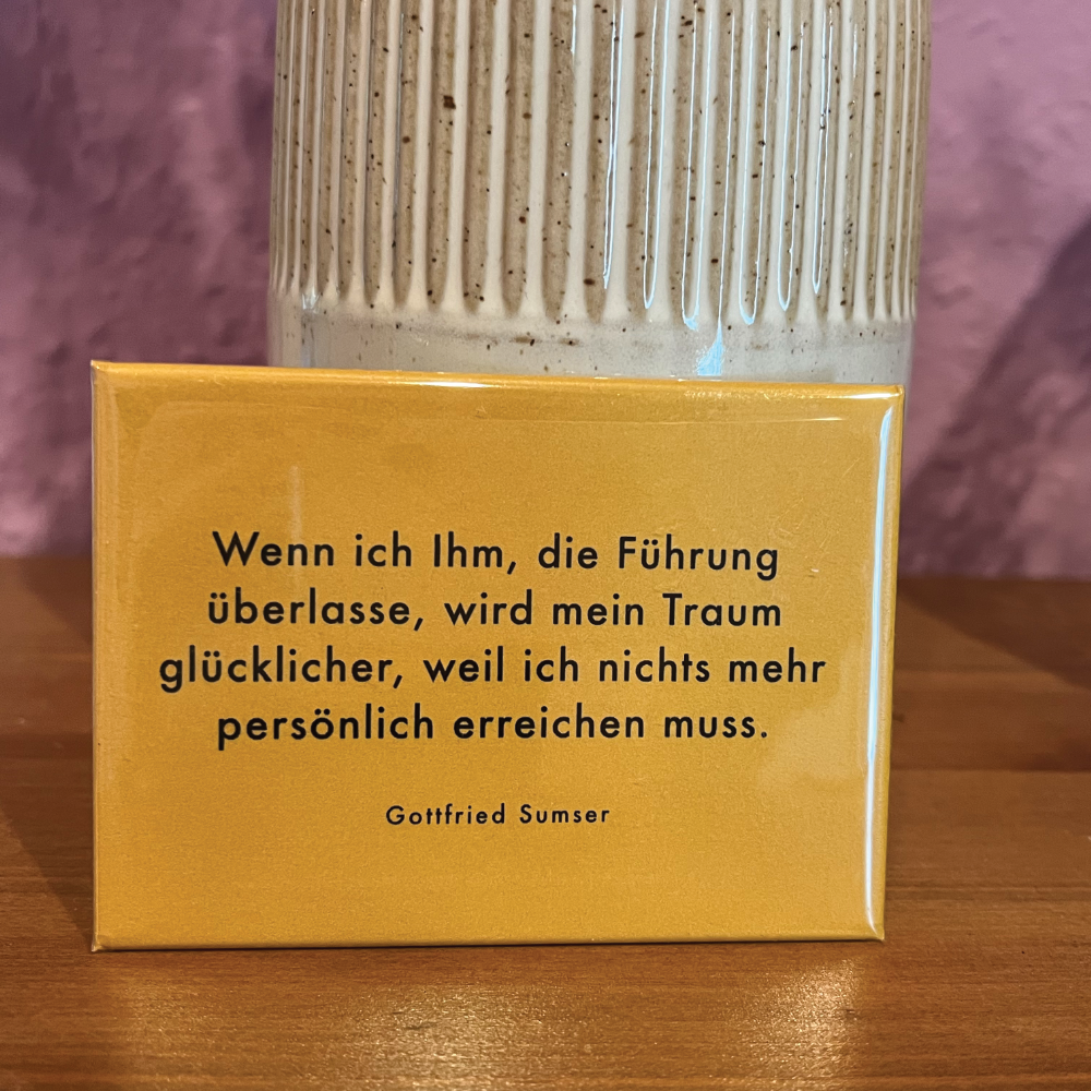 Unsere Magnet-Buttons mit ausgewählten Zitaten von Gottfried Sumser bringen diese stille Kraft in deinen Alltag – an den Kühlschrank, an dein Whiteboard oder an jeden Ort, der ein kleines Licht braucht.