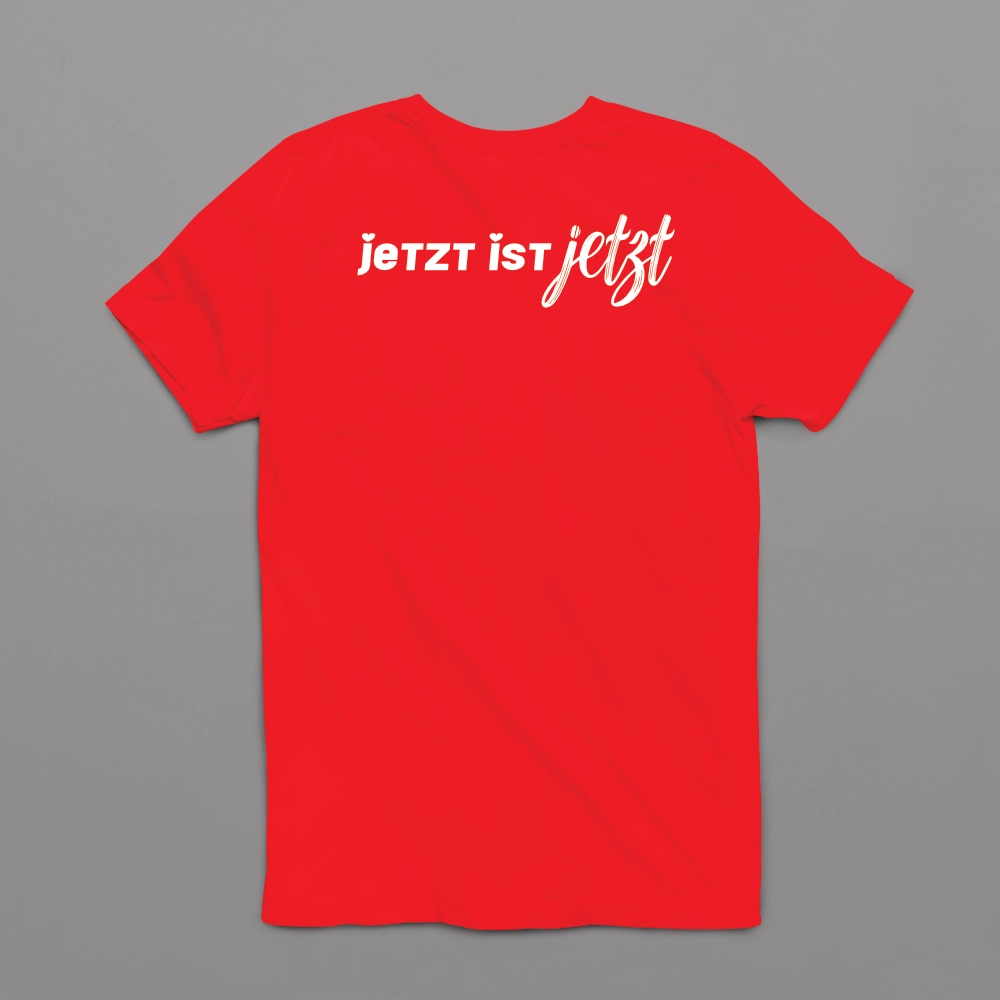 Damen-T-Shirt mit der Botschaft „Jetzt ist Jetzt“, mit dieser Botschaft kommst du immer wieder im Moment an, im Hier & Jetzt.