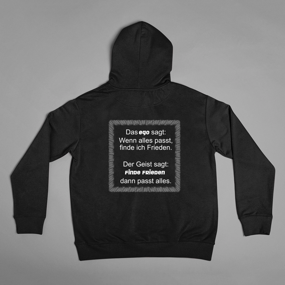 Unisex Hoodie Das Ego sagt: Wenn alles passt, finde ich Frieden. Der Geist sagt: Finde Frieden, dann passt alles.