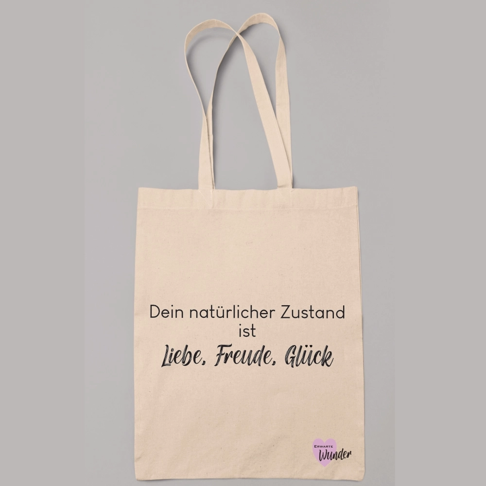 Baumwollstoffbeutel/ Shopping Bag mit der Botschaft „Dein natürlicher Zustand ist Liebe,Freude,Glück“ sooo wahr. Ab und zu vergessen wir es, und dürfen uns wieder daran erinnern.