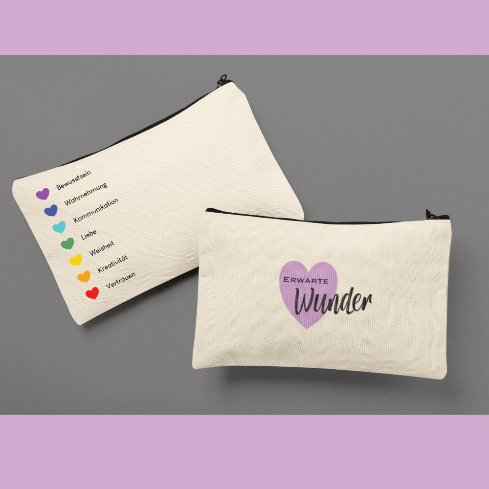 Universaltasche/ Kosmetiktasche mit der Botschaft „7 Chakren für deine Yogastunde“ womit du dich jederzeit verbinden kannst.