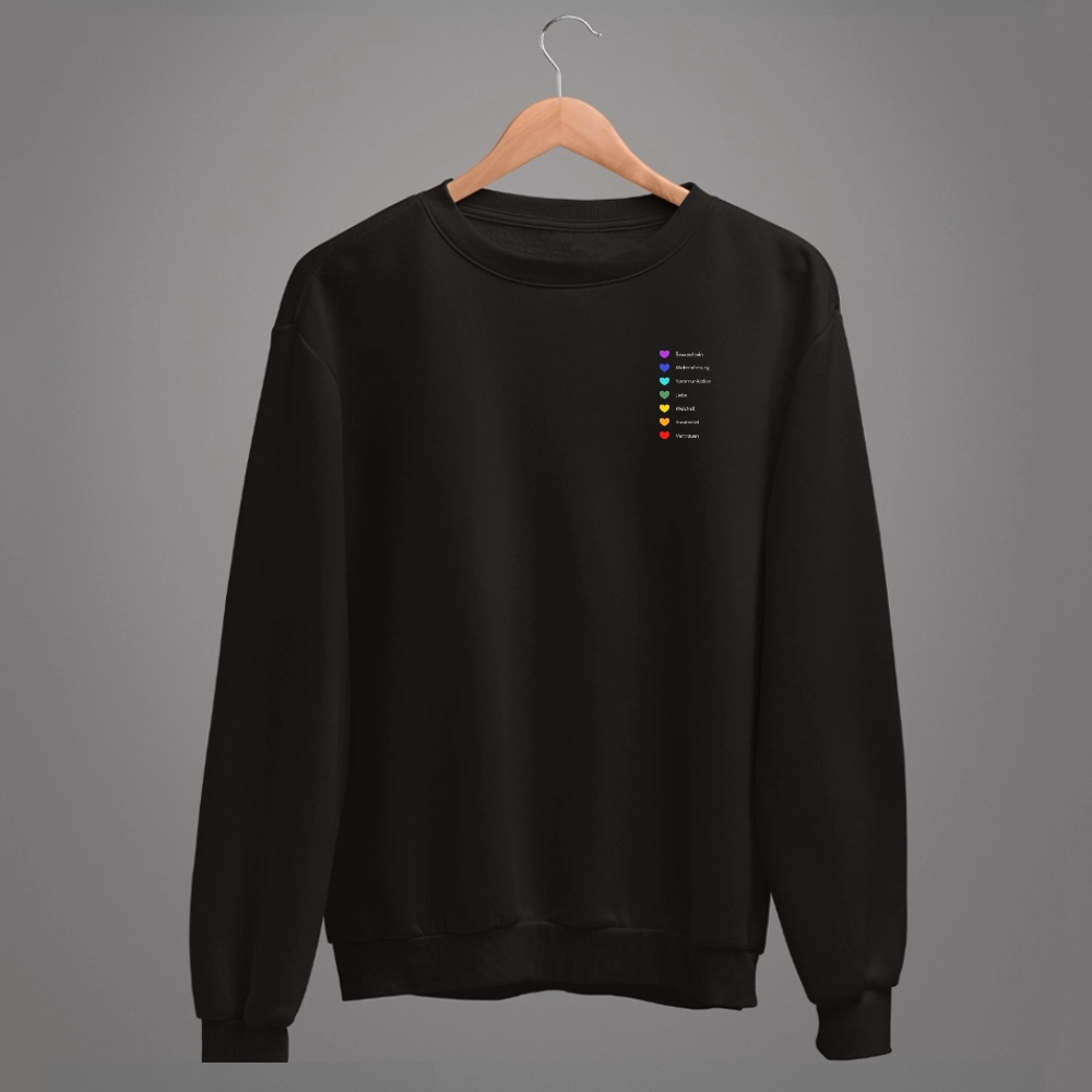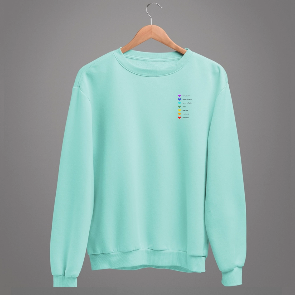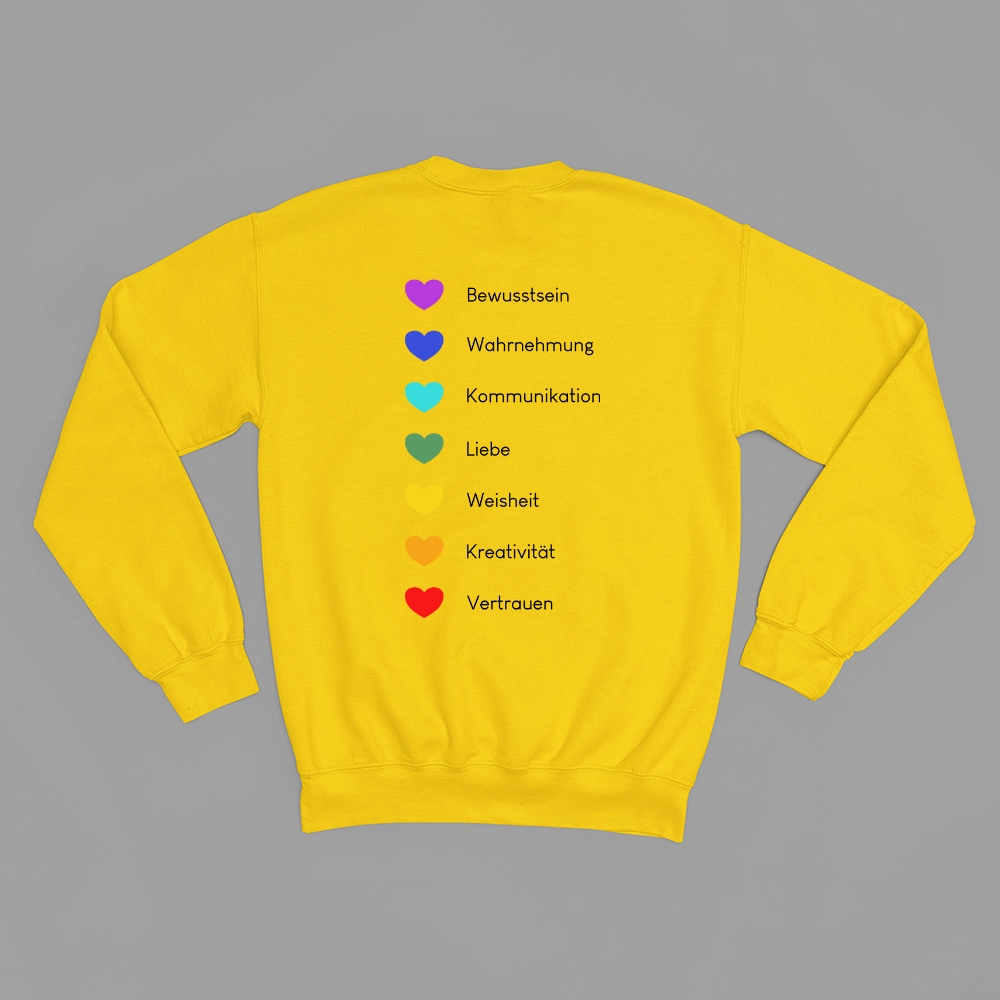Unisex-Sweatshirt mit der Botschaft „7 Chakren für deine Yogastunde“ womit du dich jederzeit verbinden kannst