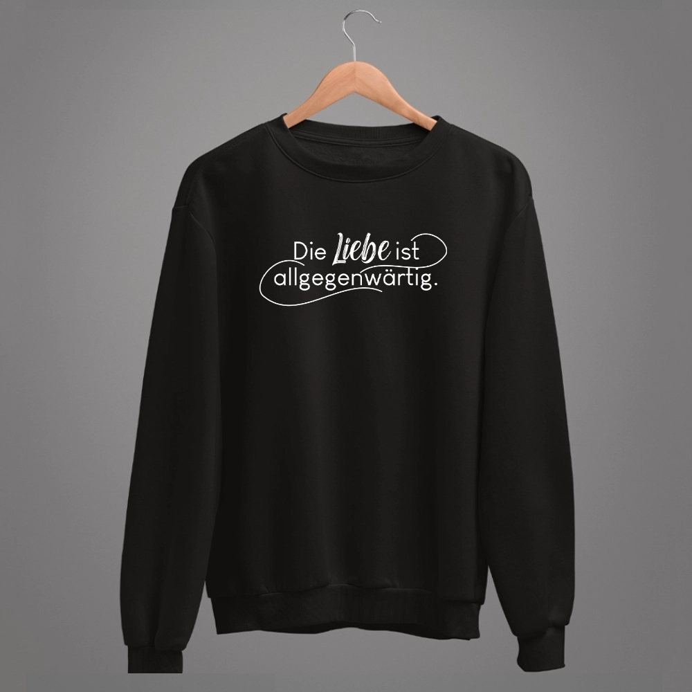 Unisex-Sweatshirt mit der Botschaft „Die Liebe ist allgegenwärtig“, was wird wohl deine nächste Begegnung darauf antworten?