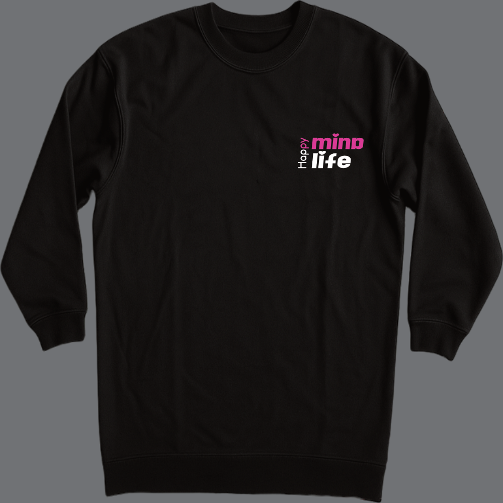 Frauen Kleid langarm mit der Botschaft „Happy Mind, Happy Life“, lass uns achtsamer im Geist sein.