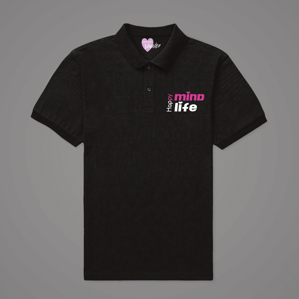 Damen Poloshirt mit der Botschaft „Happy Mind, Happy Life“ so wahr, dass wir es in jedem Moment leben dürfen.