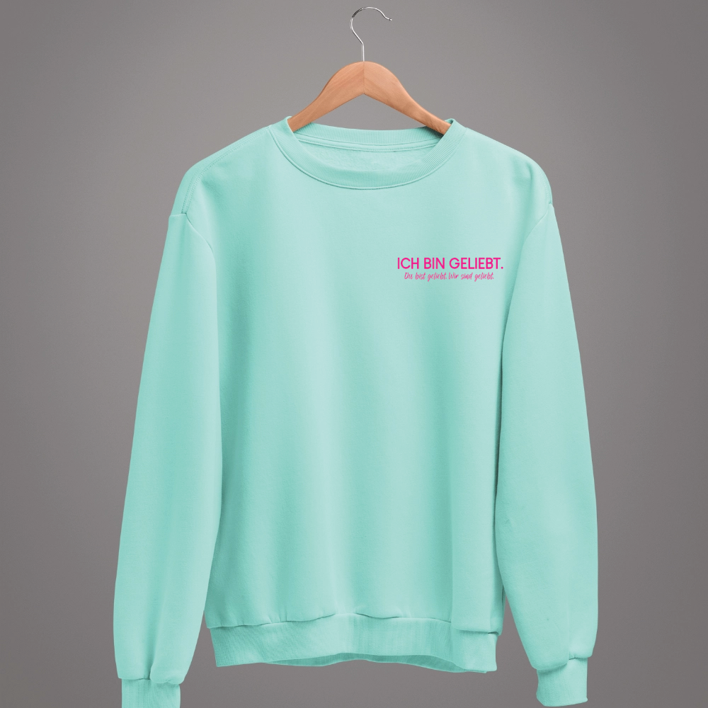Unisex-Sweatshirt mit der Botschaft „Ich bin geliebt“, in diesem Moment schwindet jedes Bedürfnis.