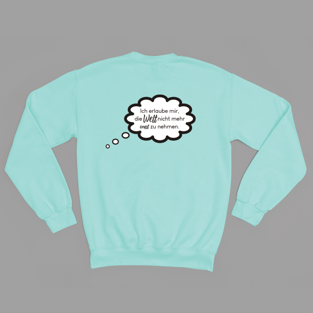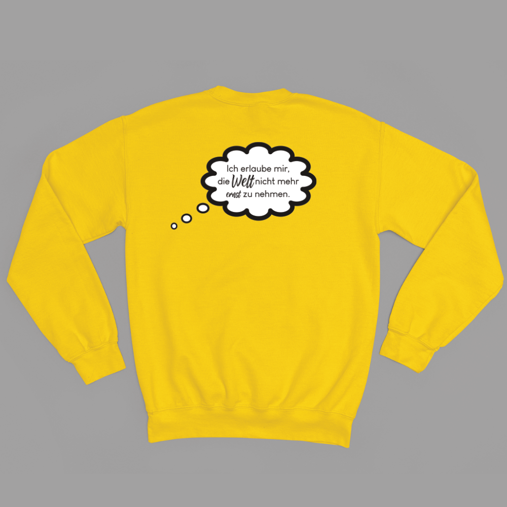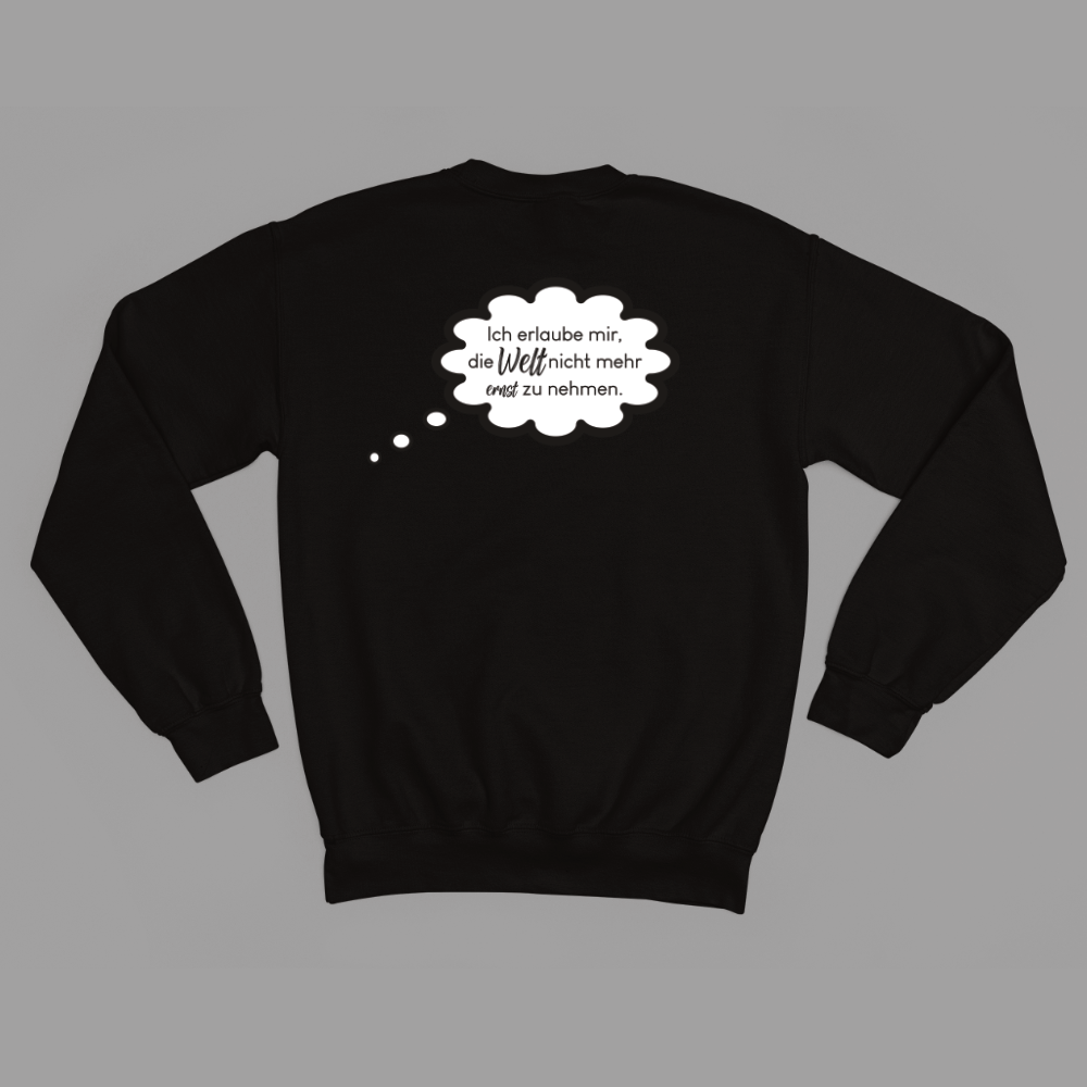 Unisex-Sweatshirt mit der Botschaft „Ich erlaube mir, die Welt nicht mehr ernst zu nehmen“ verbindet dich noch mehr mit deinen Liebsten, und jedem dem du begegnest.