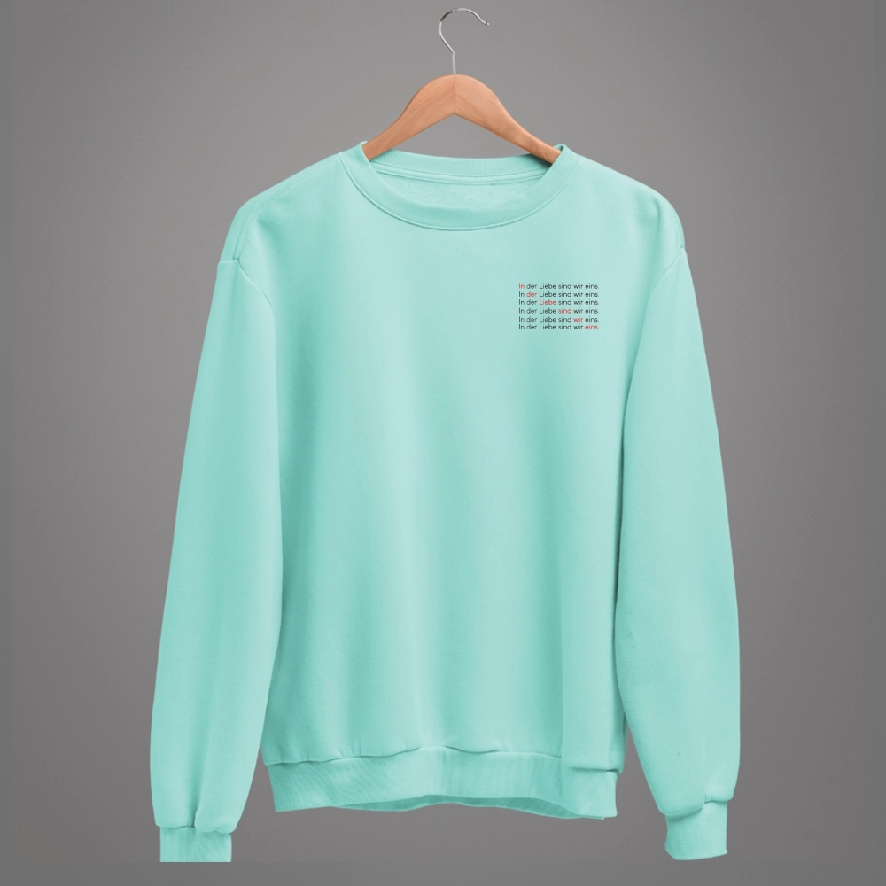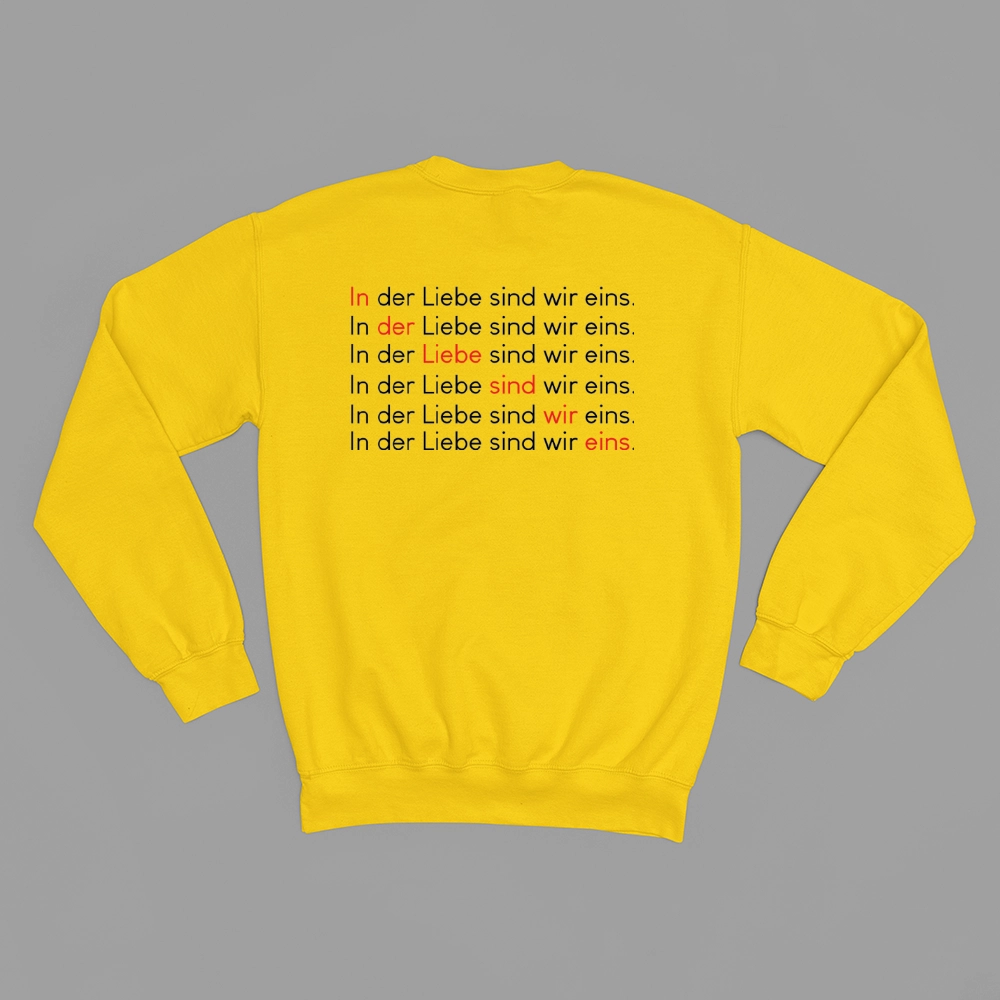 Unisex-Sweatshirt mit der Botschaft „In der Liebe sind wir eins“, hierin steckt so viel Wahrheit.