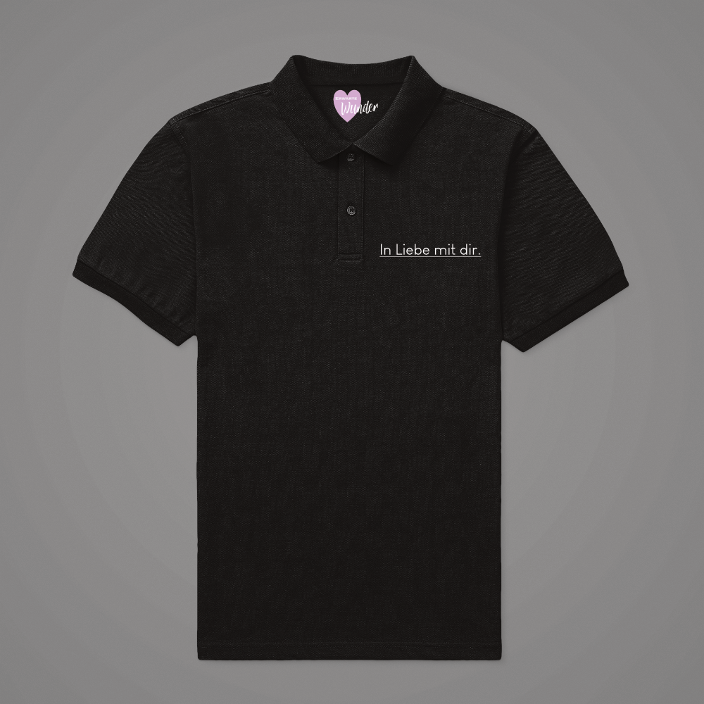 Damen Poloshirt mit der Botschaft „In Liebe mit dir“, ist so wichtig dies weiterzugeben.