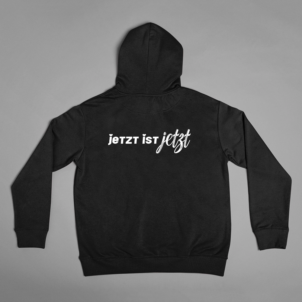 Unisex Hoodie mit der Botschaft „Jetzt ist Jetzt“, mit dieser Botschaft kommst du immer wieder im Moment an, im Hier & Jetzt.