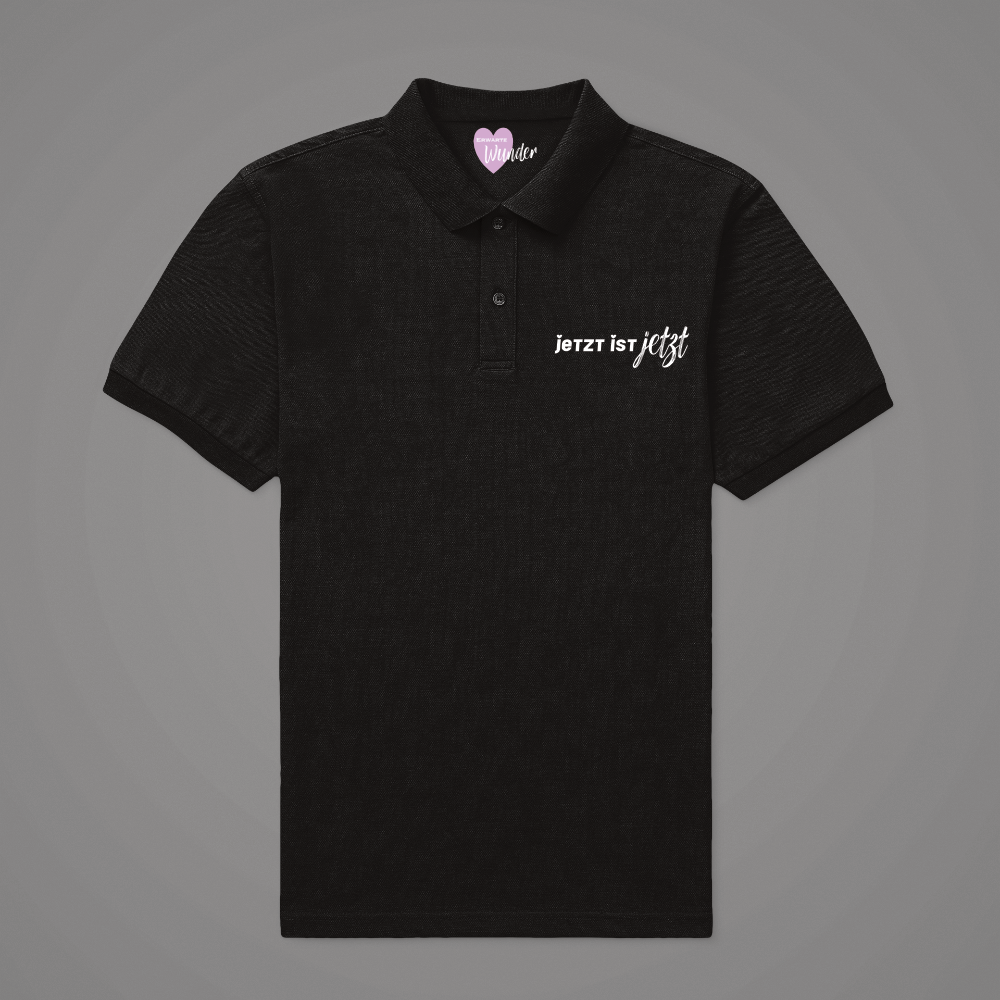 Damen Poloshirt mit der Botschaft „Jetzt ist Jetzt“, mit dieser Botschaft kommst du immer wieder im Moment an, im Hier & Jetzt.