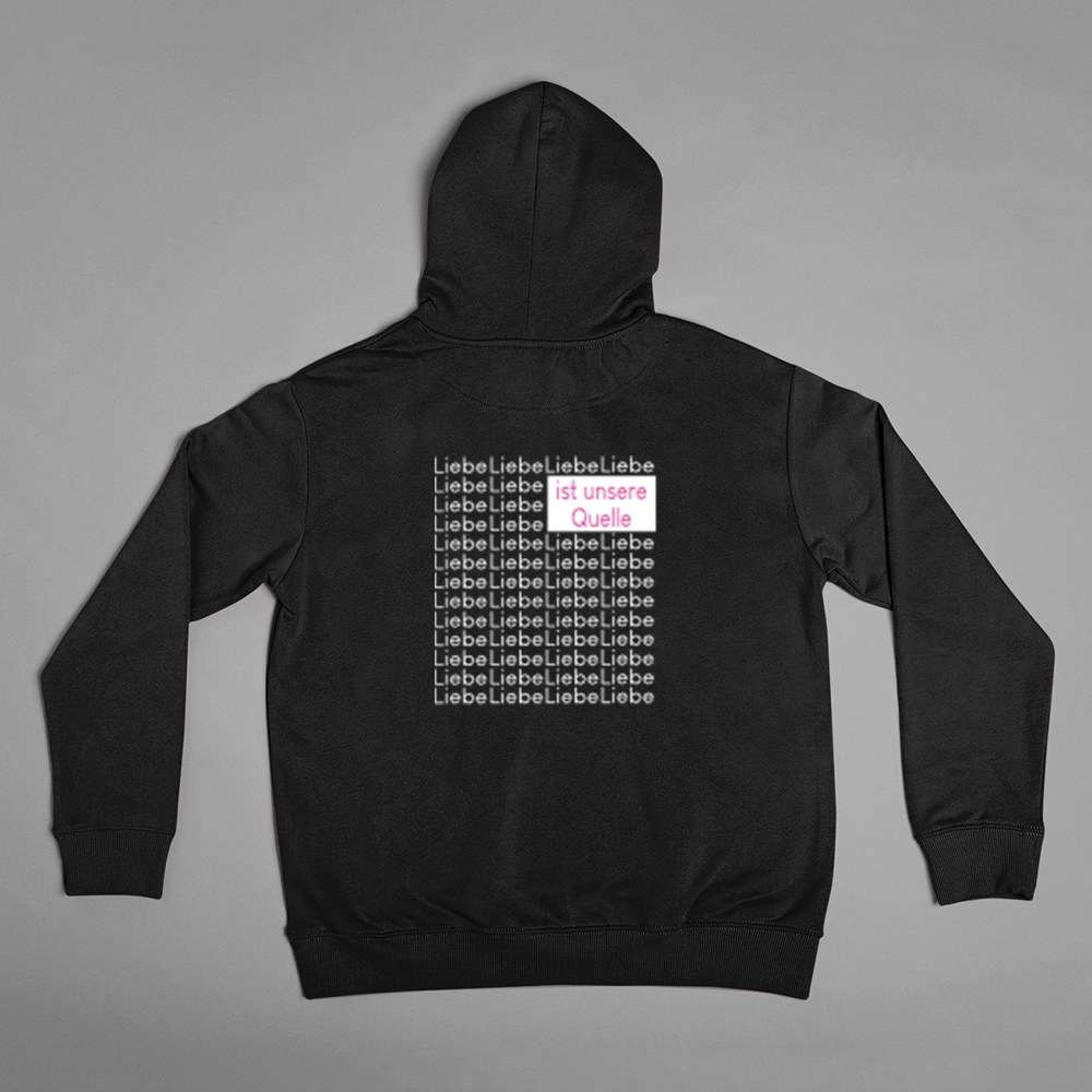 Unisex Hoodie mit der Botschaft „Liebe ist unsere Quelle“, hier spricht die Wahrheit.