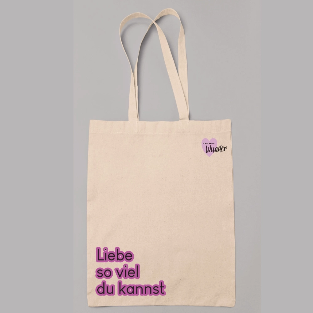 Baumwollstoffbeutel/ Shopping Bag mit der Botschaft „Liebe so viel du kannst“, hiermit ist alles gesagt.