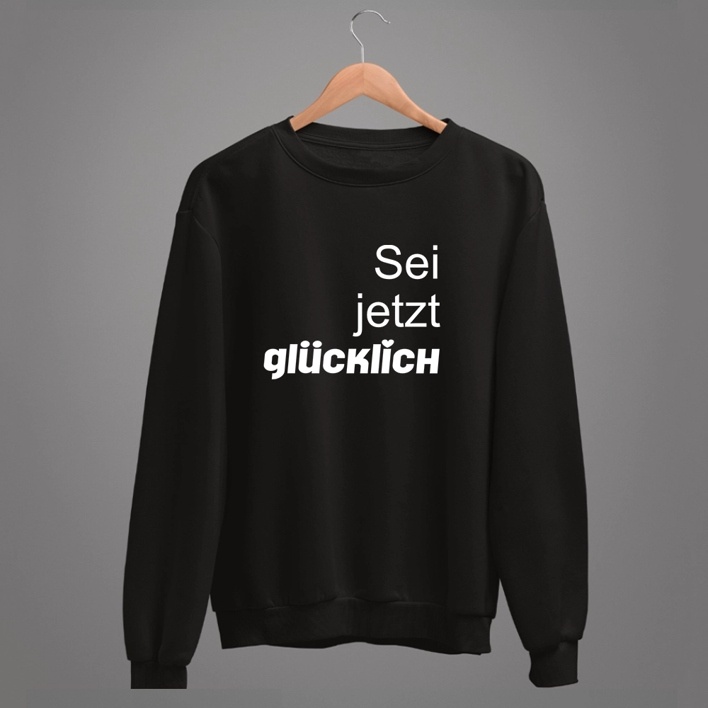 Unisex-Sweatshirt mit der Botschaft „sei jetzt glücklich“,eine kleine Aufforderung der Wahrheit.