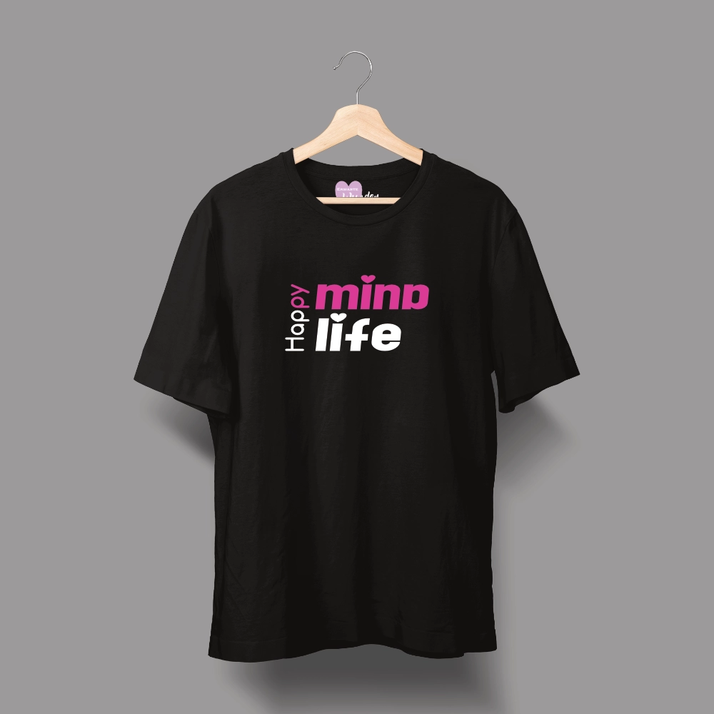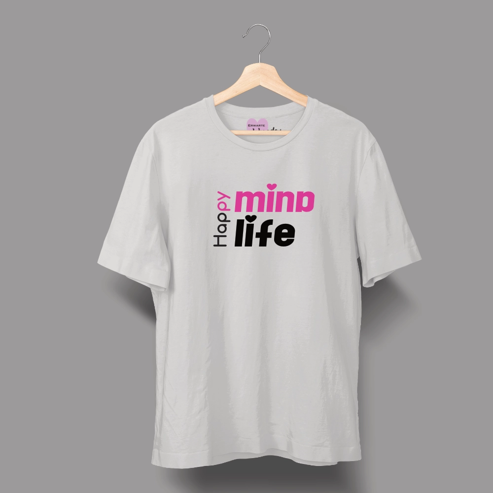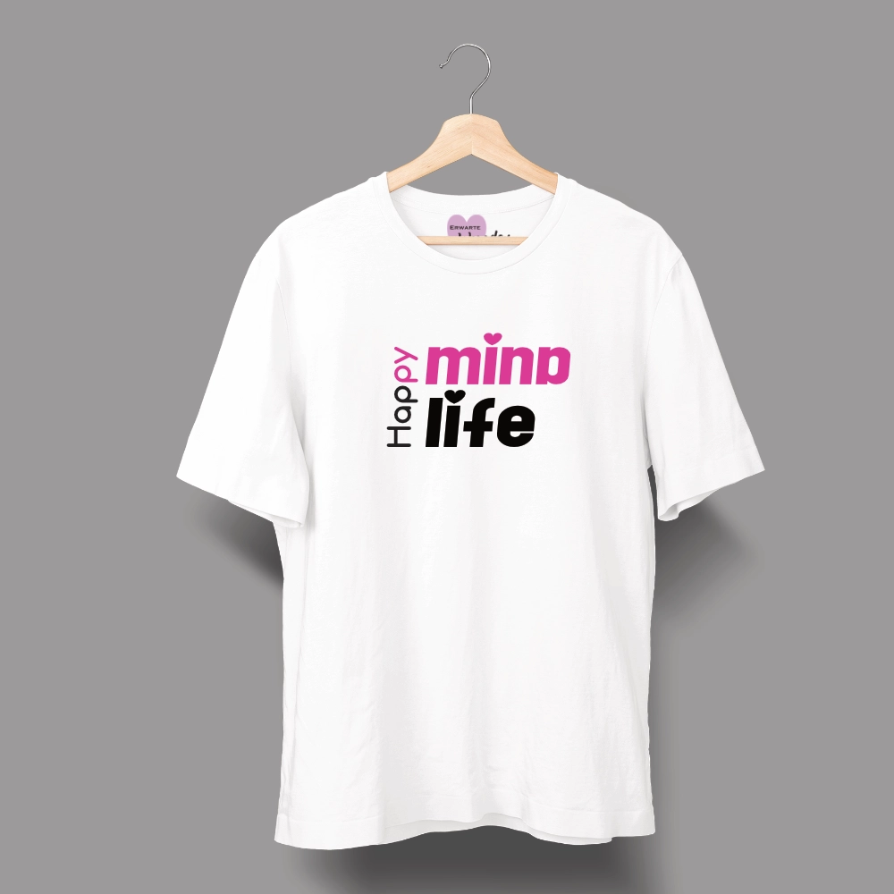 Unisex-T-Shirt mit der Botschaft „Happy Mind, Happy Life“ so wahr, dass wir es in jedem Moment leben dürfen.