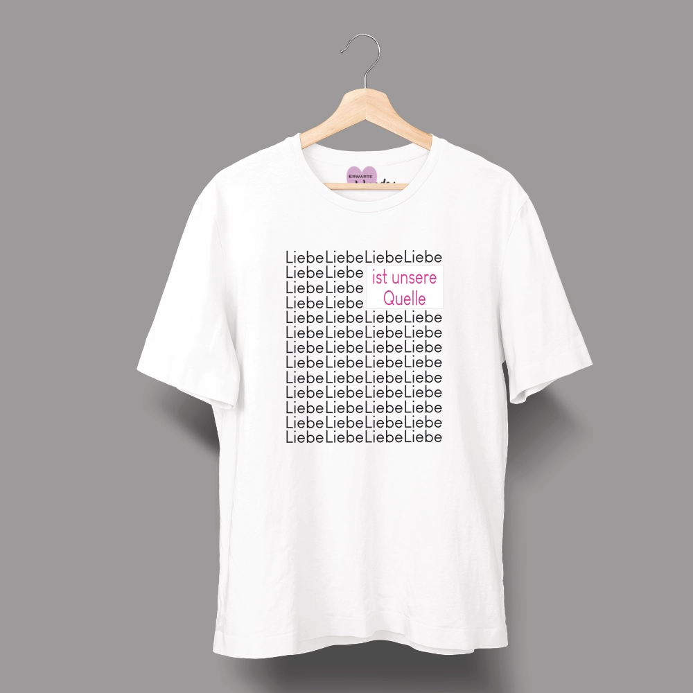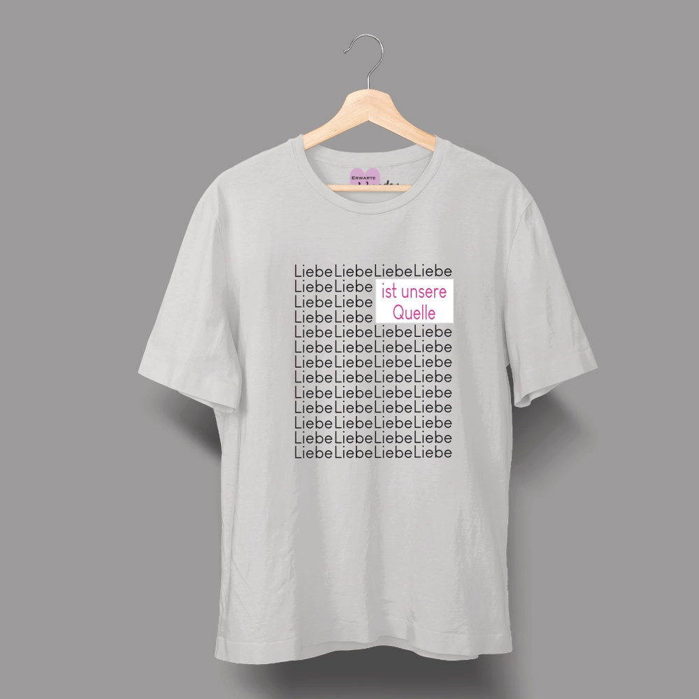 Unisex-T-Shirt mit der Botschaft „Liebe ist unsere Quelle“, hier spricht die Wahrheit.