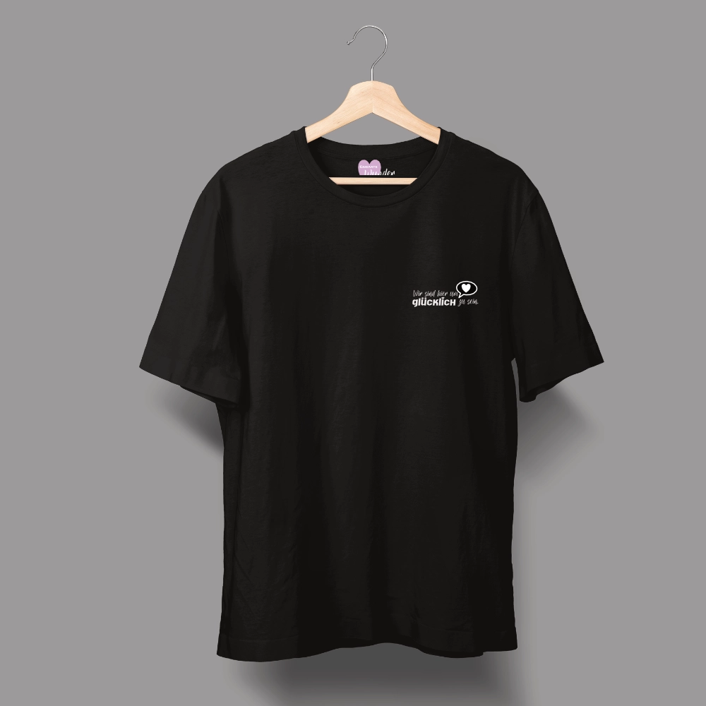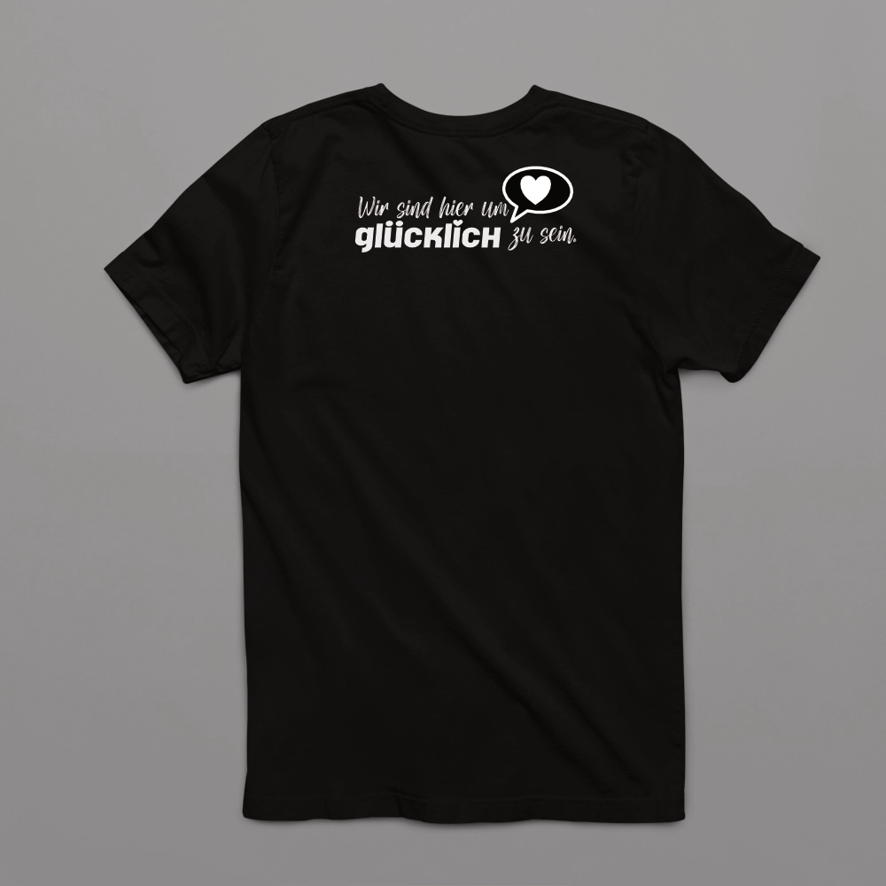 Unisex-T-Shirt mit der Botschaft „wir sind hier um glücklich zu sein“, lass es uns zusammen leben.