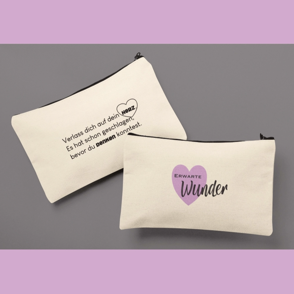 Universaltasche/ Kosmetiktasche mit der Botschaft „Verlass dich auf dein Herz, es hat schon geschlagen, bevor du denken konntest“, eine schöne Erinnerung und so wahr.