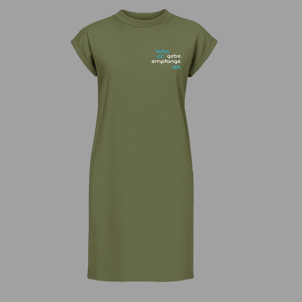 Frauen Kleid kurzarm mit der Botschaft „Was ich gebe, empfange ich“, wenn wir das wirken lassen, hat es eine enorme Kraft.