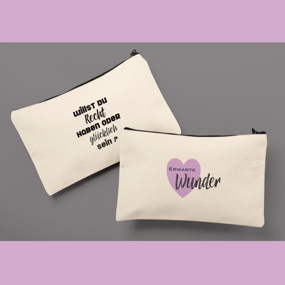 Universaltasche/ Kosmetiktasche mit der Botschaft „Willst du Recht haben oder glücklich sein?“ eine essentielle Frage.