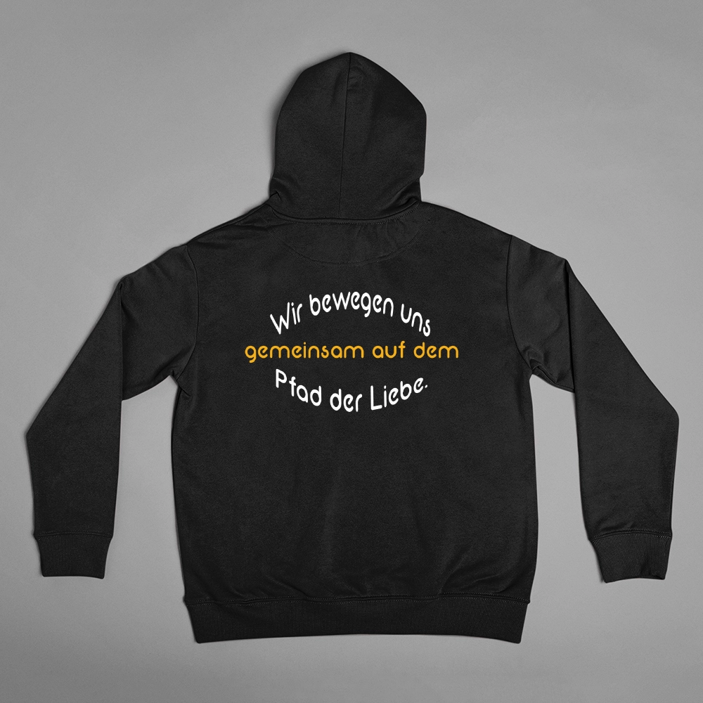 Unisex Hoodie mit der Botschaft „Wir bewegen uns gemeinsam auf dem Pfad der Liebe.“, das tun wir in jedem Moment.