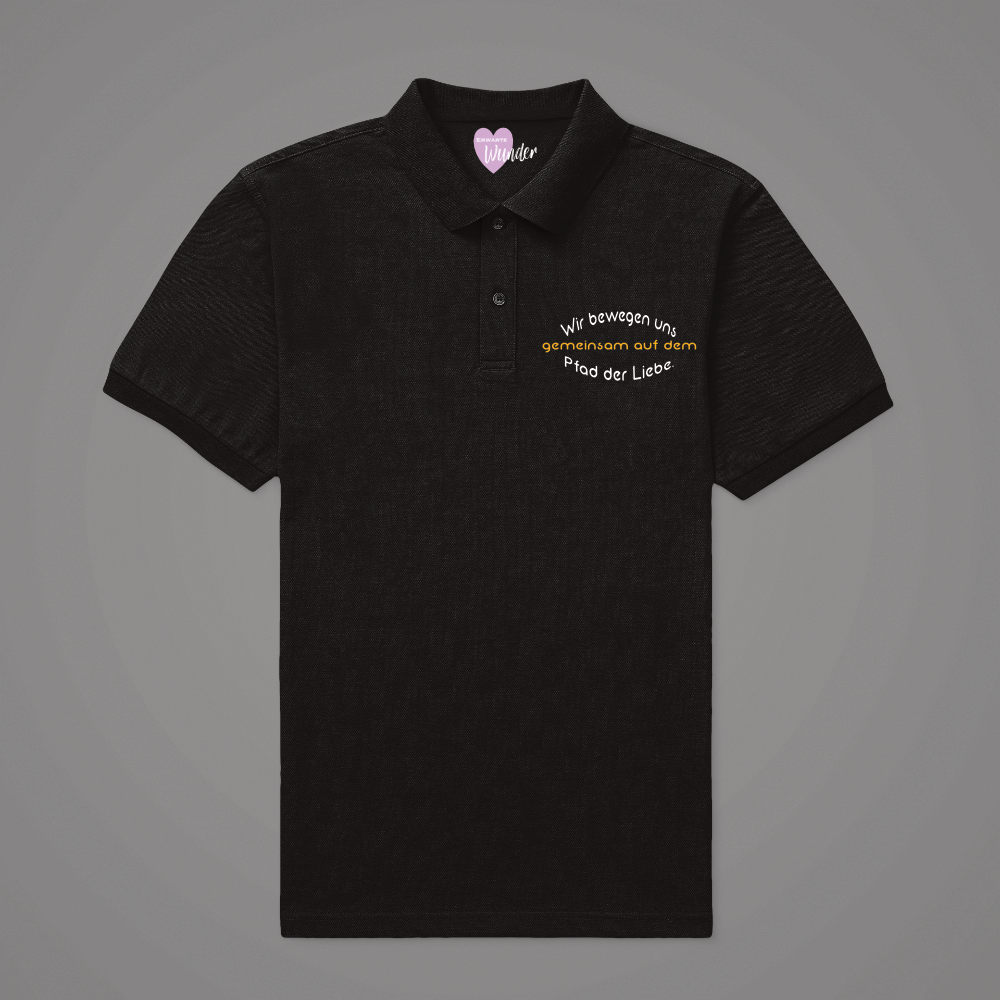 Damen Poloshirt mit der Botschaft „Wir bewegen uns gemeinsam auf dem Pfad der Liebe“, wir sind nie alleine unterwegs.