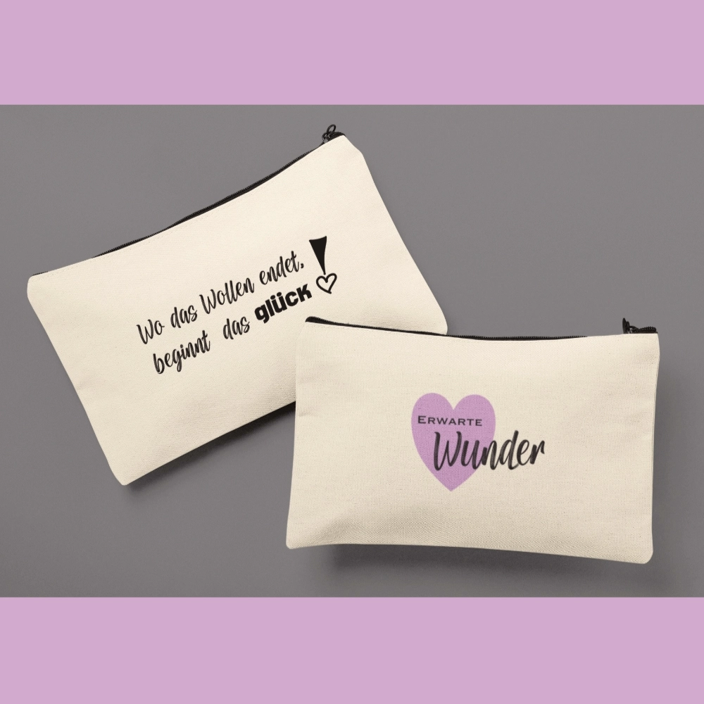 Universaltasche/ Kosmetiktasche mit der Botschaft „Wo das Wollen endet, beginnt das Glück“ so wahr.