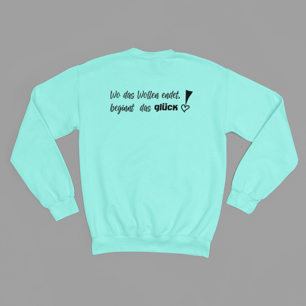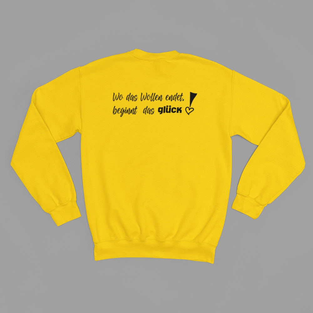 Unisex-Sweatshirt mit der Botschaft „Wo das Wollen endet, beginnt das Glück““ verbindet dich noch mehr mit deinen Liebsten, und jedem dem du begegnest.