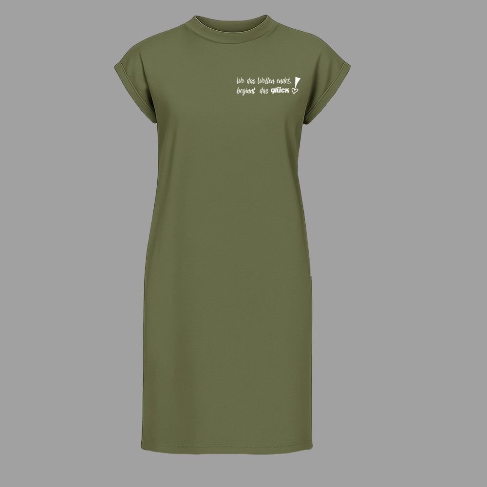 Frauen Kleid kurzarm mit der Botschaft „Wo das Wollen endet, beginnt das Glück“. Dankeschön!